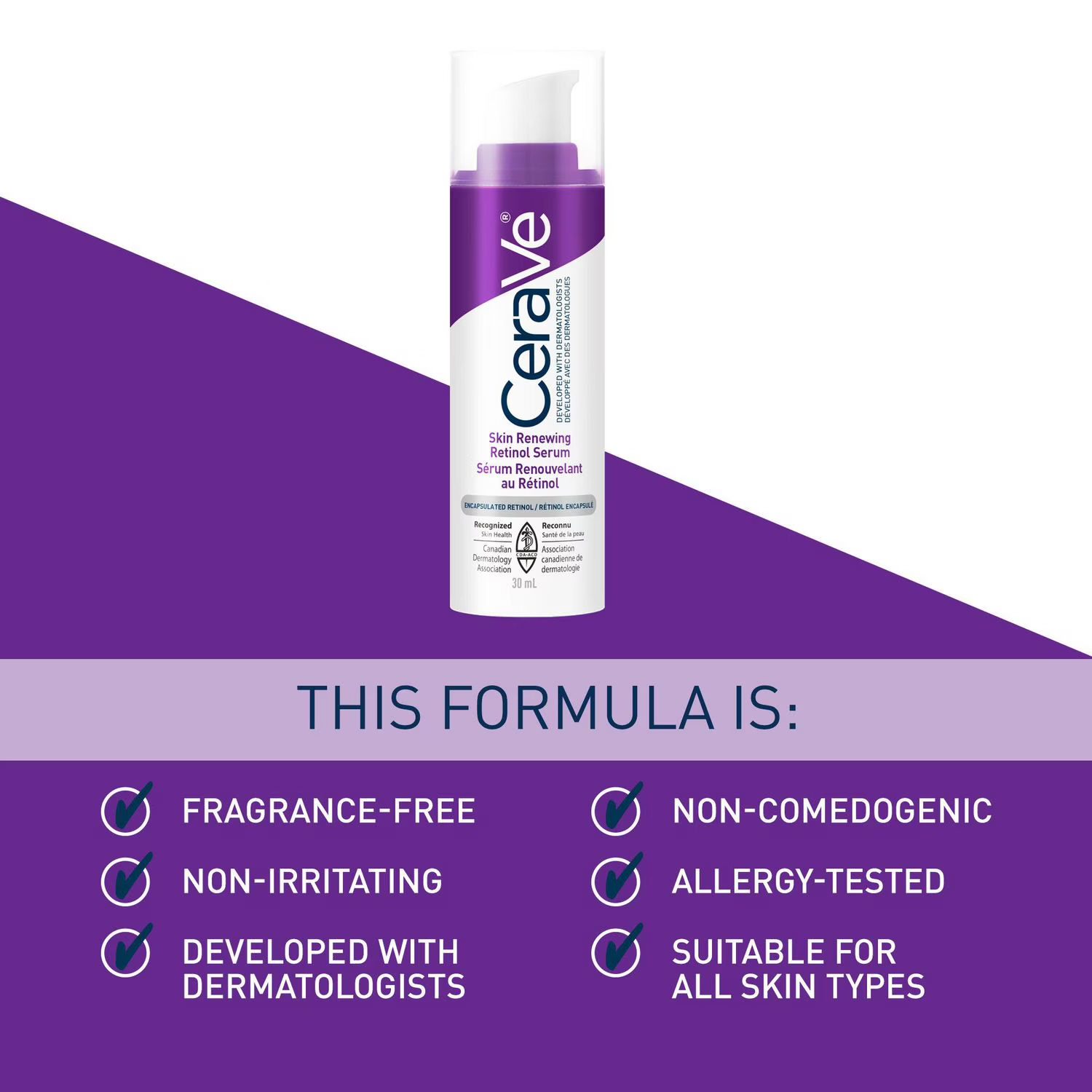 For an anti-aging skincare routine, a Retinol serum is an effective product to help reduce the appearance of fine lines and wrinkles as it improves the skin’s texture and radiance. CeraVe Skin Renewing Retinol Serum is a gentle yet effective daily Retinol Serum that provides a variety of anti-aging benefits. Enhanced with three essential Ceramides, Hyaluronic Acid and Niacinamide to help restore the skin barrier, retain hydration and help sooth the skin. Plus, it includes patented time-release MVE Delivery Technology for all-day hydration.
