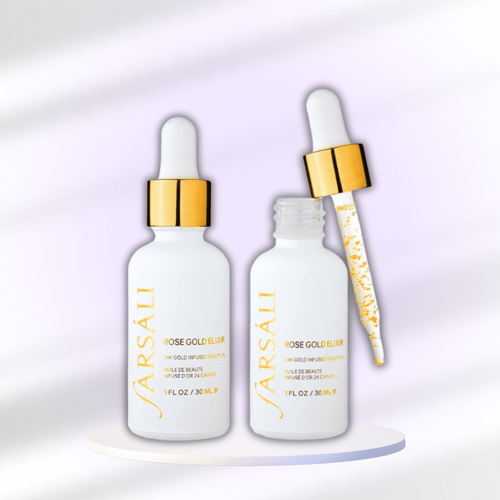 FARSÁLI’s Rose Gold Elixir is a 24-karat, gold-infused beauty oil that’s rich in vitamins, antioxidants, and essential fatty acids. It’s formulated with ingredients that work together synergistically to provide the ultimate results to address all your skincare needs. Rosehip seed oil penetrates quickly to nourish your skin while visibly brightening and improving skin texture. It is packed with linoleic and linolenic acids, vitamin C, and vitamin A to help reduce the appearance of fine lines and discoloration. The pure 24k Gold flakes absorb right into your skin, leaving your skin naturally glowing and radiant.