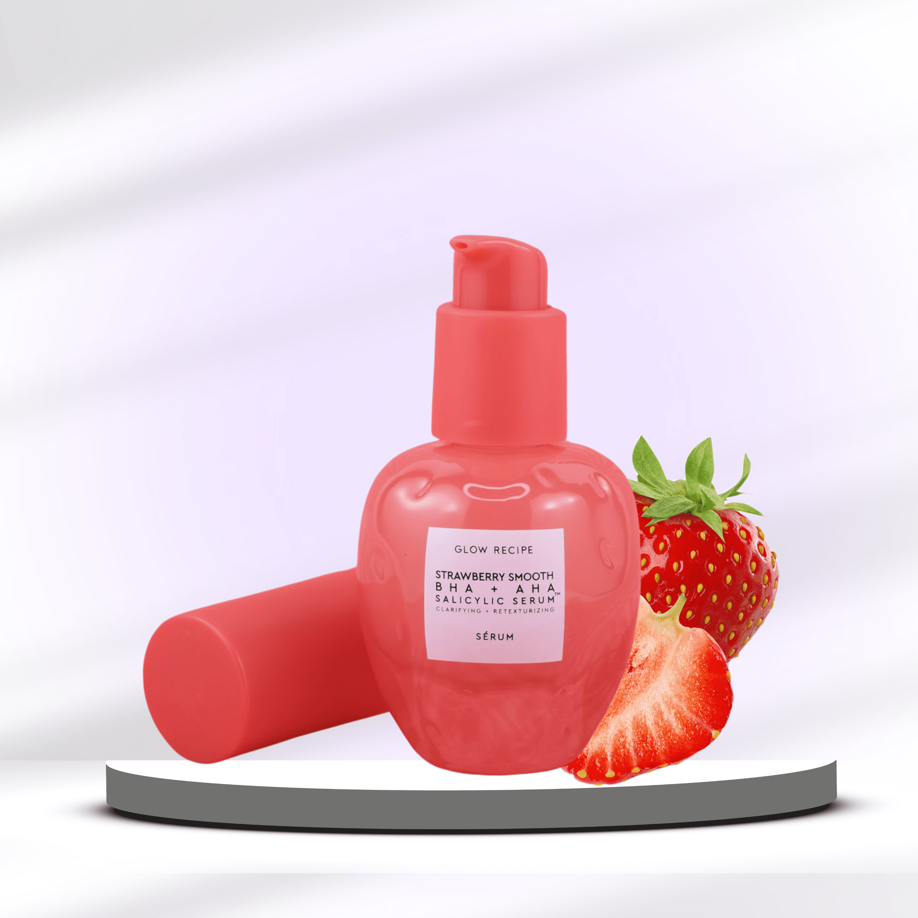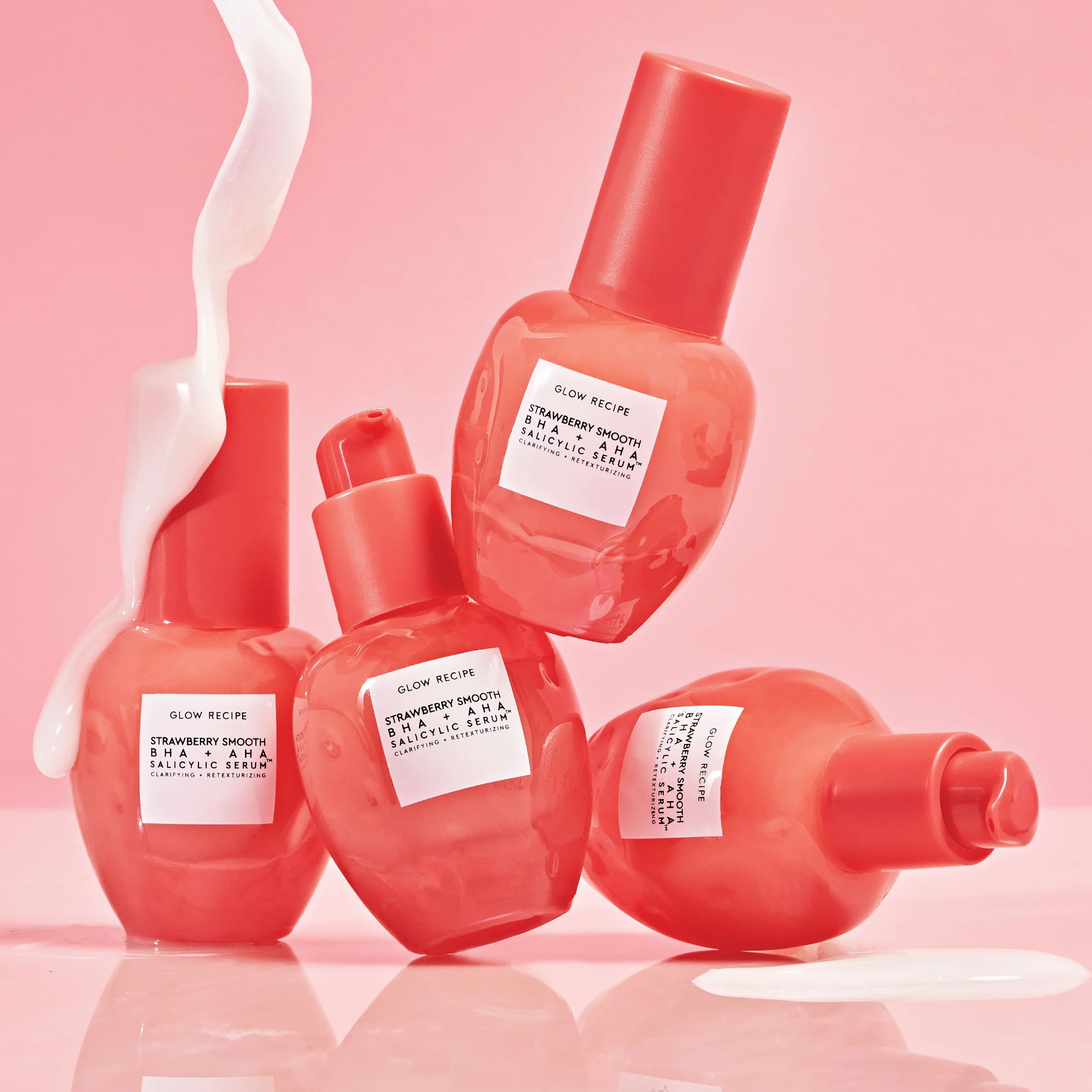 Meet Strawberry Smooth: Gently smooth texture, clear breakouts, and refine pores, while calming skin with our most powerful, yet gentle daily clarifying BHA+AHA serum.